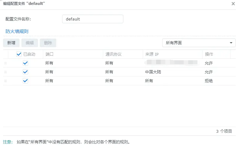 新增防火墙规则,下面三个按需设置,设置禁止国外IP访问前 必需 先设置好 允许内网IP访问、允许中国IP!!!